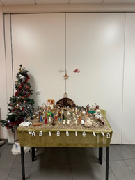 Cette année, les élèves de 6ème ont réalisé une grande crèche qui a été installée à la sortie du self des élèves. Chaque élève de 6ème était invité à apporter un personnage, un animal ou une décoration afin de faire une grand crèche visible de tous !
